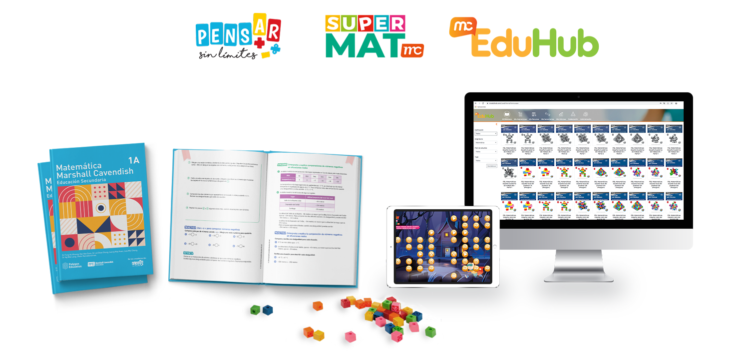 EDUHUB es una plataforma digital que contiene todo el material del estudiante (libros y cuadernos) y del docente (libros, cuadernos del alumno y guía) de nuestra línea Pensar sin Límites, Matemáticas Singapur de Marshall Cavendish Education.