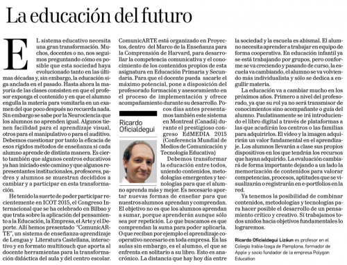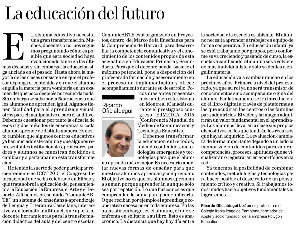 Así comienza este interesante artículo de opinión que ha escrito nuestro compañero Ricardo Oficialdegui y que ha sido publicado en Diario de Navarra. Añadimos el PDF para que lo podáis leer íntegramente. ¿Qué os parece? ¿Estáis de acuerdo con Ricardo? Esperamos vuestros comentarios.