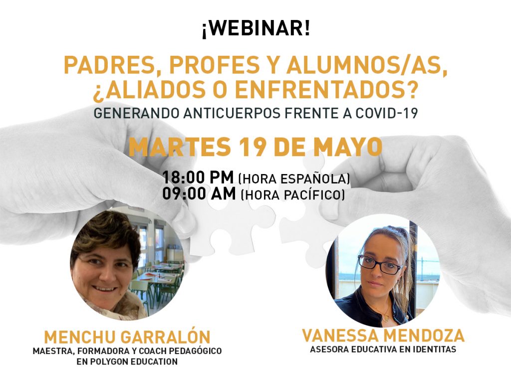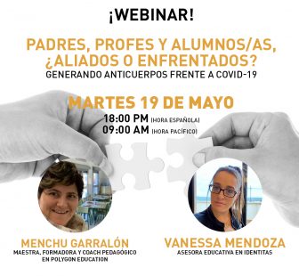 Todas esta cuestiones abordarán Menchu Garralón, formadora y coach educativo en Polygon Education, junto a Vanessa Mendoza, orientadora familiar y asesora educativa en Identitas. El próximo martes 19 de mayo, ambas dialogarán en un Webinar sobre las dificultades que todos los implicados les han hecho llegar a lo largo de estos meses de confinamiento, y tratarán de resolver todas las cuestiones que los participantes planteen. Podéis INSCRIBIROS EN ESTE ENLACE.
